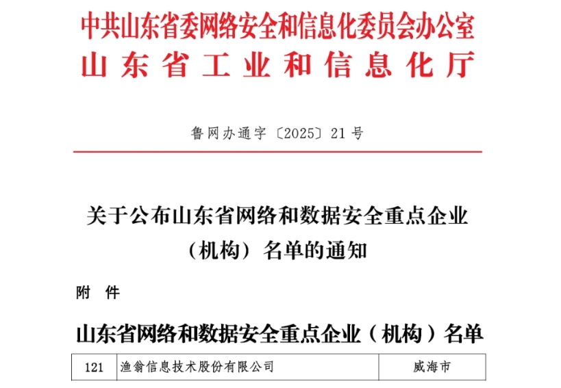近期,山東省委網信辦、山東省工信廳正式公佈“山東省網絡和數據安全重點企業(组织)名單”。本次評選共遴選出147家重點企業和33家重點组织,evo真人(中国)信息憑藉在密碼技術領域的自主創新實力、全棧式數據安全解決方案及突出的行業貢獻成功入選。