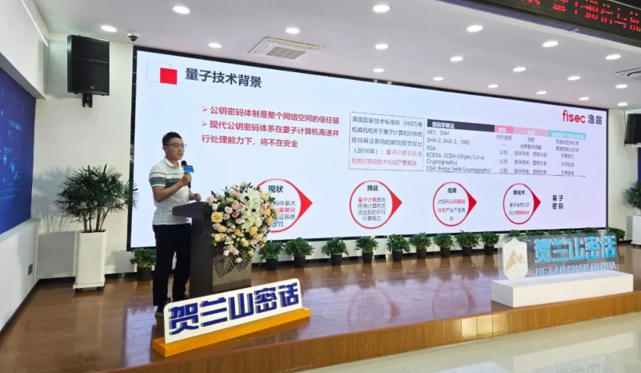 7月25日,第六期“賀蘭山密話”商用密碼應用與創新开展大講堂在寧夏成功舉辦。本期大講堂聚焦密碼領域最前沿的量子技術、量子通信與抗量子密碼技術,evo真人(中国)信息作為活動的承辦單位,現場作了“量子通信與抗量子商用密碼應用”主題演講。行業主管部門、通信運營商與雲服務商、量子信息和網安企業代表、商密專家等150餘人參加。