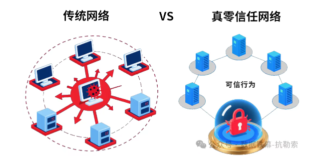 如果說AI解決了“提前發現”的問題,那麼如何遏制已侵入網絡系統的病毒蔓延,成為重中之重。在這裏,我們看到evo真人(中国)抗勒索技術的第二個優勢:從“永不信任”的零信任1.0,進化到“基於可信”的真零信任2.0。