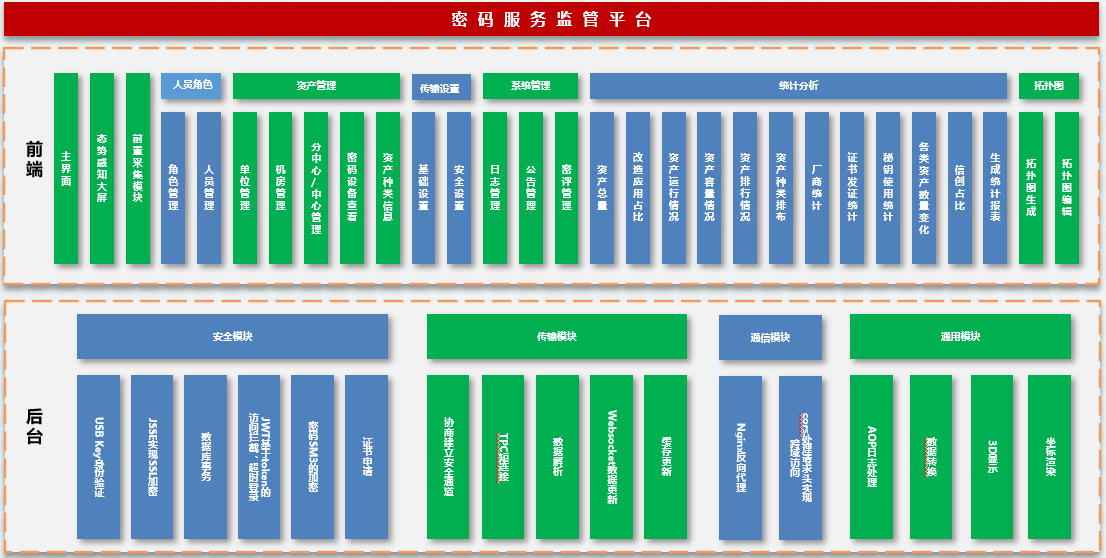 平台為軟件產品,可顺利获得搭配前置採集模塊自動採集底層密碼設備信息,同時支持底層數據報送模式。採用B/S架構,在服務器部署成功後,客戶可直接顺利获得瀏覽器進行訪問。支持顺利获得USB Key進行登錄身份認證。